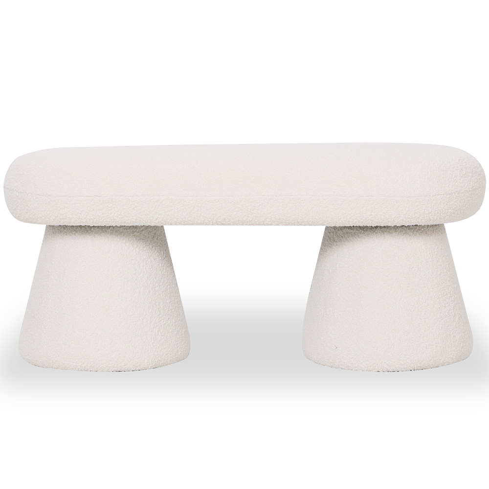 Banco Tapizado en Tela Bouclé Blanco - Moderno e Elegante Minimalista - Elvara