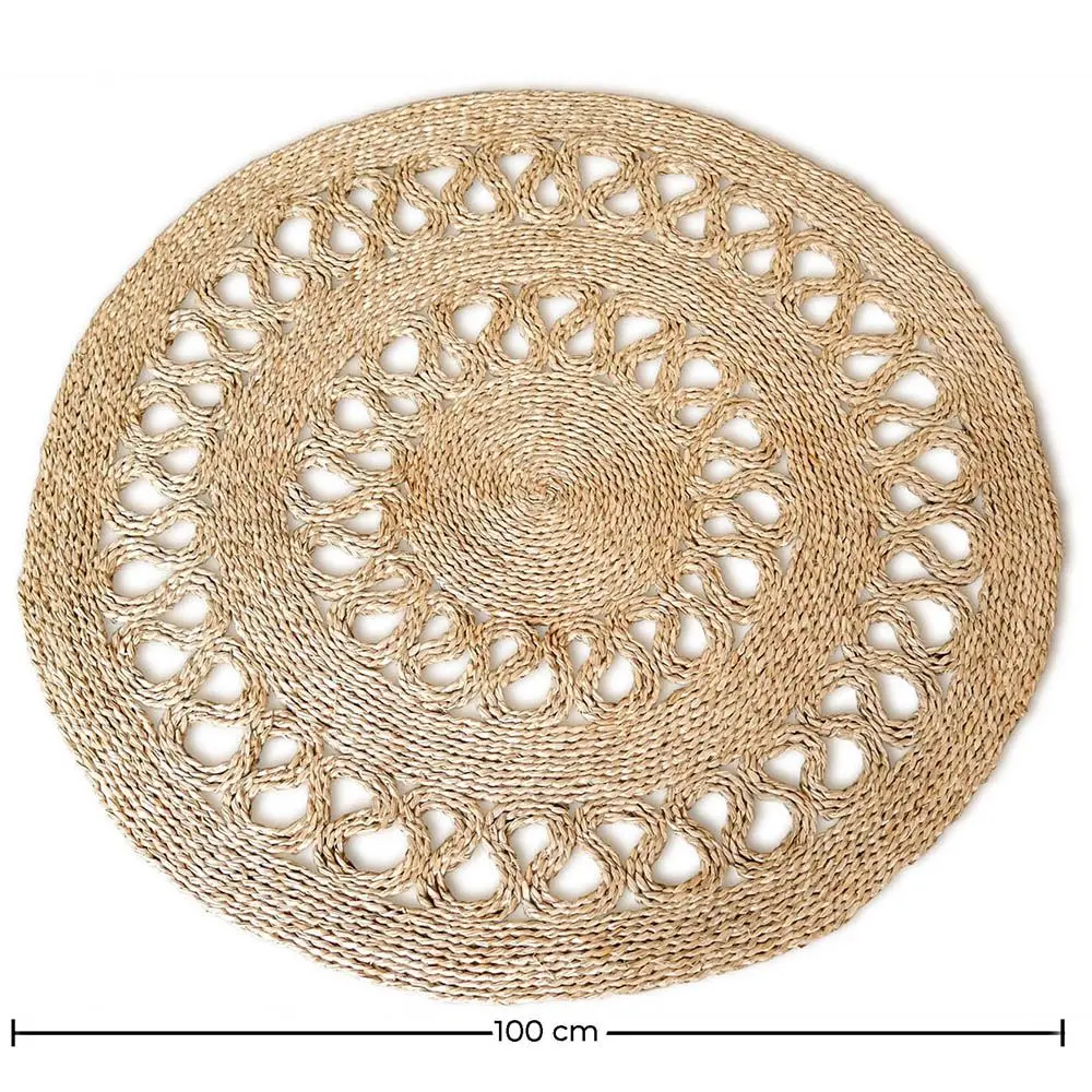 Nylah es una obra de arte para el suelo que transformará cualquier espacio en un oasis bohemio y acogedor. El trenzado meticuloso del yute crea una textura única y visualmente atractiva que llama la atención de inmediato. Con un diámetro de 100 cm, esta alfombra es lo suficientemente grande como para convertirse en el centro de una habitación o para complementar otros elementos decorativos en un espacio más amplio. Su forma redonda aporta un sentido de armonía y fluidez a cualquier ambiente. El yute trenzado utilizado en esta alfombra no solo es estéticamente agradable, sino que también es resistente y duradero, asegurando que permanecerá en excelentes condiciones durante mucho tiempo.