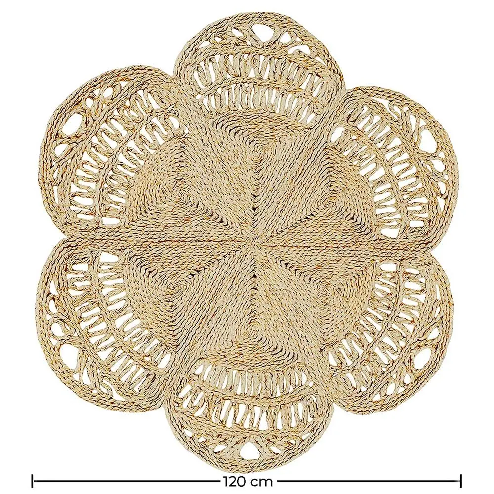 Bacu es una alfombra de yute trenzado con un diseño floral precioso, que quedará genial y aportará un toque de frescura y modernidad en cualquier estancia de la casa. Además de estar fabricada en un material totalmente natural y ecológico, su tamaño de 120 cm es el idóneo para poder colocarla en cualquier lugar. Con su patrón único, es la opción perfecta para realzar tu espacio y crear un ambiente acogedor y con personalidad.