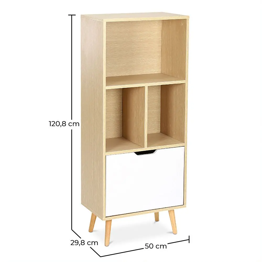 Este aparador nórdico de gran calidad está fabricado en madera y combina a la perfección el color blanco con el color de la madera natural. Consta de 4 amplios compartimentos dónde podrás colocar libros, ornamentos, algún jarrón con flores....