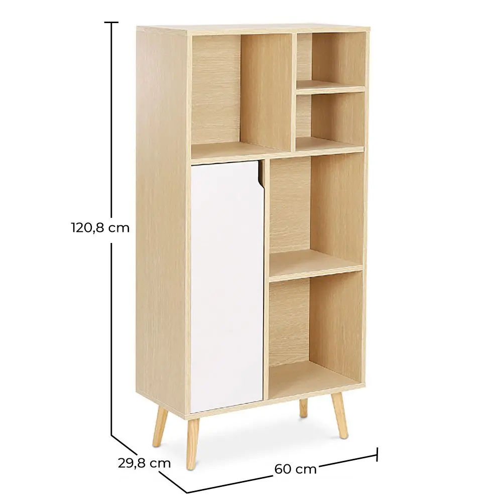 Qué mejor que esté aparador de estilo escandinavo para darle a tu hogar un toque de calidez mientras mantienes tus cosas en orden. Este bonito aparador nórdico está fabricado de madera y combina a la perfección el color blanco con la madera natural. Consta de 6 compartimentos donde podrás almacenar una gran cantidad de objetos o libros.