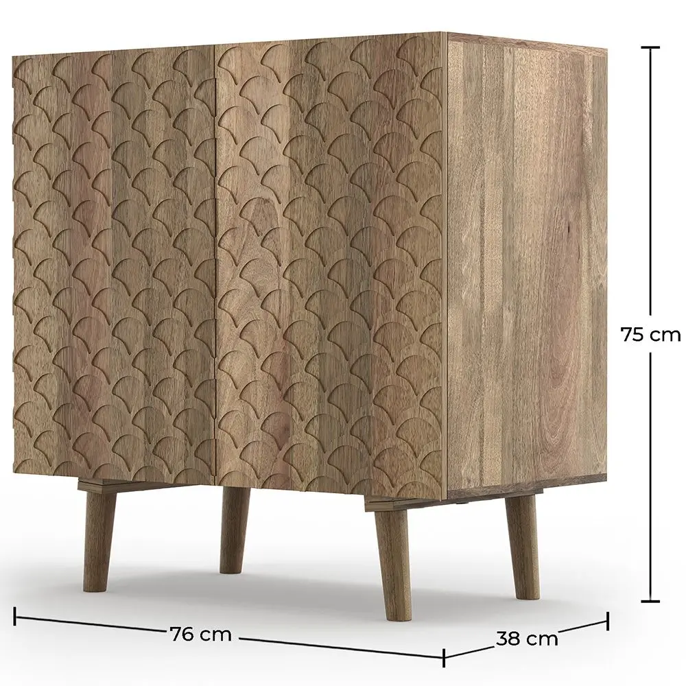 Si el estilo decorativo que más encaja con tu forma de vida es el estilo boho apuesta por este aparador de madera natural. Las puertas están talladas con un diseño muy especial que aportará encanto a tu hogar. Además este aparador de diseño que podrás colocar en tu comedor, salón o cocina es una perfecta solución de almacenaje gracias a su amplio espacio interior.