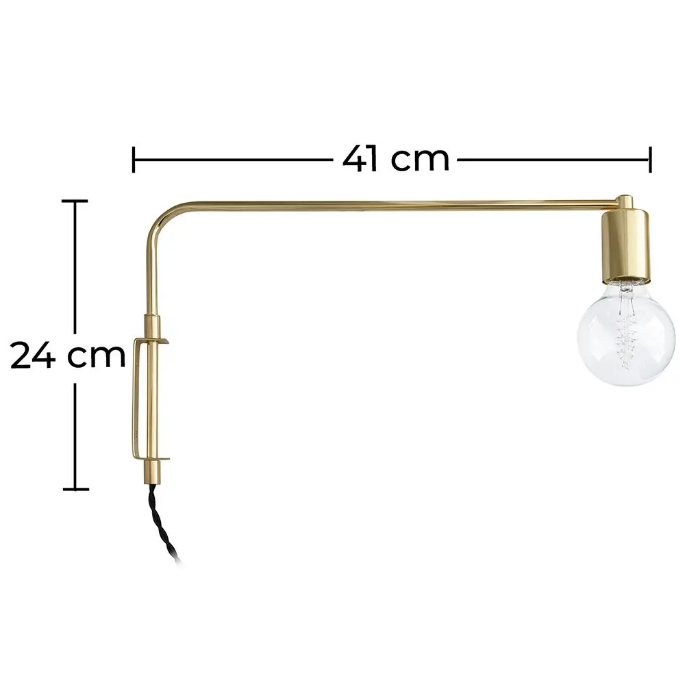 Esta preciosa lámpara de pared tiene un diseño minimalista que unido a su color dorado le dará a tu decoración interior un aire refinado y de gran calidad. Este aplique de pared consta de un brazo giratorio que te permite enfocar la luz hacia donde desees.