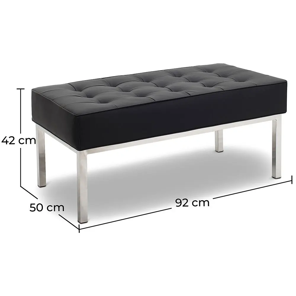 Con su elegancia y su excepcional comodidad, este Banco Kanel de 2 plazas encajará a la perfección tanto en su oficina como en su hogar. Este banco es muy representativo del estilo y arte. Está disponible en una gama de colores. El asiento descansa sobre 4 patas de acero que conjuntan a la perfección con los colores de su tapizado en cuero y que le da un aire moderno y elegante.