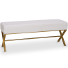 Eleva el estilo de tu hogar con este banco tapizado en tela aterciopelada y una sólida estructura de metal dorado. Su diseño combina elegancia y funcionalidad, ideal para entrada, dormitorio, sala de estar o vestidor. El asiento acolchado ofrece confort, mientras que la base metálica garantiza resistencia y un toque sofisticado. Perfecto para quienes buscan un mueble decorativo moderno y versátil que aporte distinción a cualquier ambiente.