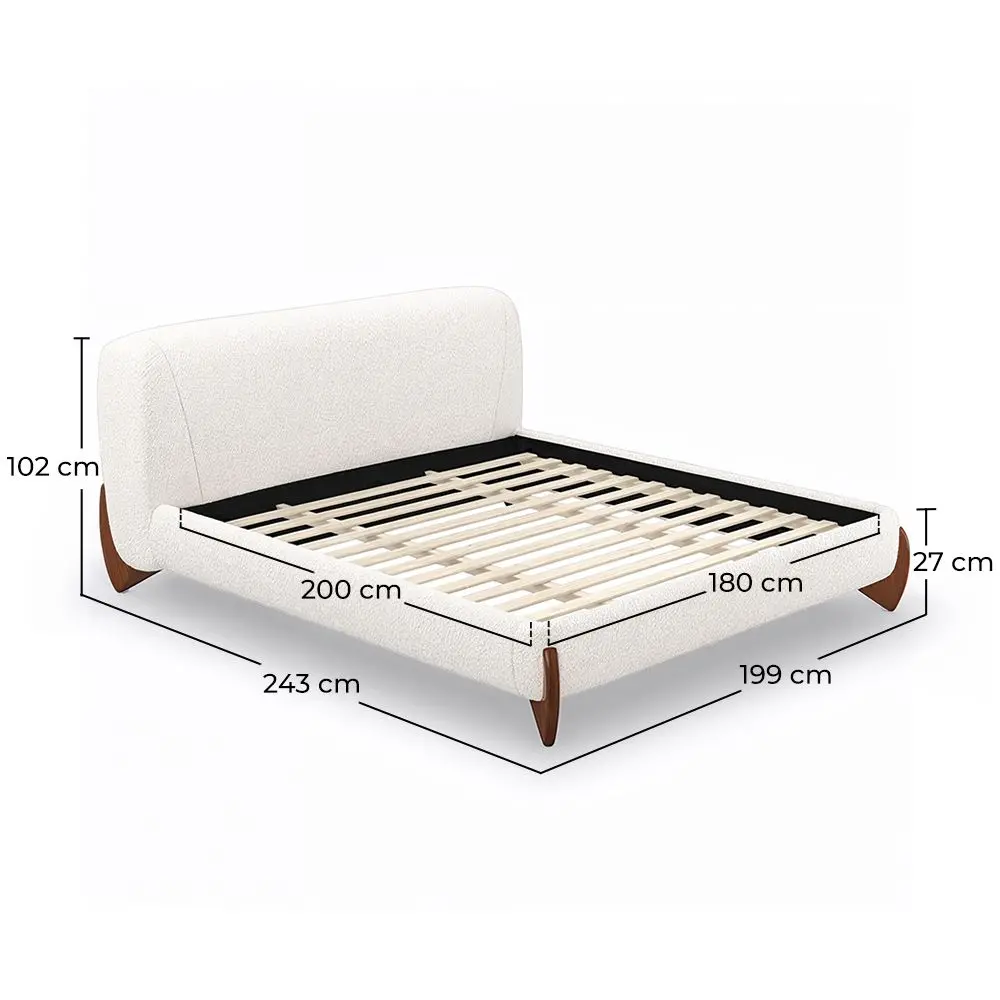 Esta cama, diseñada para colchones de 180x200 cm, combina elegancia y funcionalidad con su estructura de madera tapizada en tela bouclé. Las patas de madera en color marrón oscuro añaden un toque de sofisticación, mientras que el somier, formado por doce tablones de madera MDF, garantiza un soporte robusto y duradero. Su diseño moderno y minimalista la convierte en una pieza perfecta para darle un toque trendy al dormitorio. Ideal para quienes buscan un equilibrio entre estilo y confort, esta cama transforma cualquier espacio en un refugio acogedor y contemporáneo.