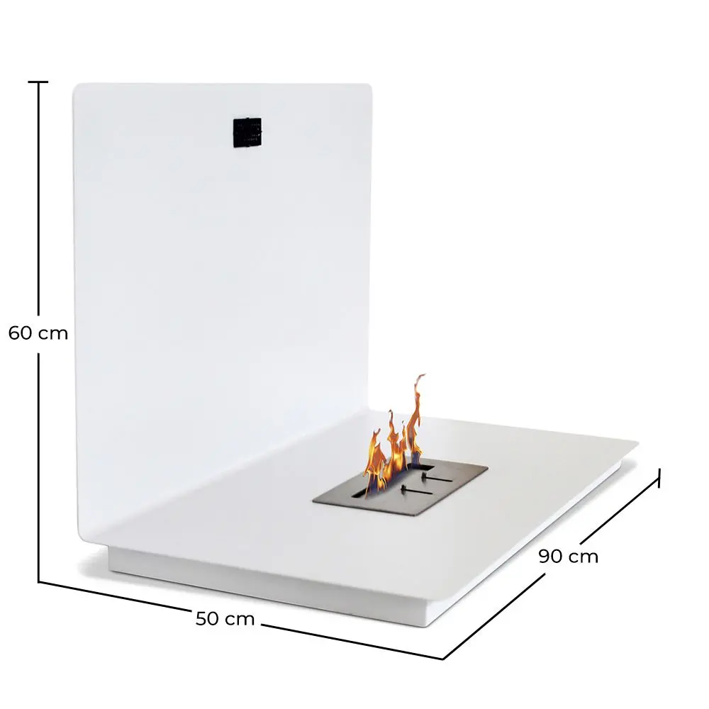 Esta chimenea no precisa un conducto de escape: ¡se acabó el deshollinar la chimenea! Esta chimenea de diseño se convertirá en una parte de su decoración de interior. Puede colocarla donde quiera, aunque es preferible hacerlo en una habitación bien ventilada. ¡No espere más para reemplazar su vieja chimenea! Además, una chimenea de etanol no produce ningún tipo de humo, olores, cenizas, polvo, hollín o chispas. Olvide esos troncos de leña rodantes y crepitantes; las llamas sólo producen vapor de agua y el equivalente a 3 velas de dióxido de carbono, consiguiendo una atmósfera cálida. Esta combustión emite la misma cantidad de CO2 que un ser humano, con lo que no hay ningún riesgo. Su mantenimiento se limita a recargar el combustible (gel de etanol para los contenedores y líquido para el quemador de aceite), un líquido 100 % natural, destilado de las plantas de azúcar. La chimenea de etanol es también una gran fuente de calor que le ahorrará dinero. Su capacidad calorífica es similar a la producida por dos o tres radiadores eléctricos, dependiendo del modelo, y tiene una consumición muy baja: de 0.35 L a 0.50 L de etanol por hora. Por último, todos nuestros quemadores de etanol tienen doble pared (3mm 2mm) y están soldados al 100% para evitar cualquier riesgo, y todos los materiales han sido usados de acuerdo con las regulaciones de seguridad (se incluye un sistema de montado en todas las chimeneas de pared).