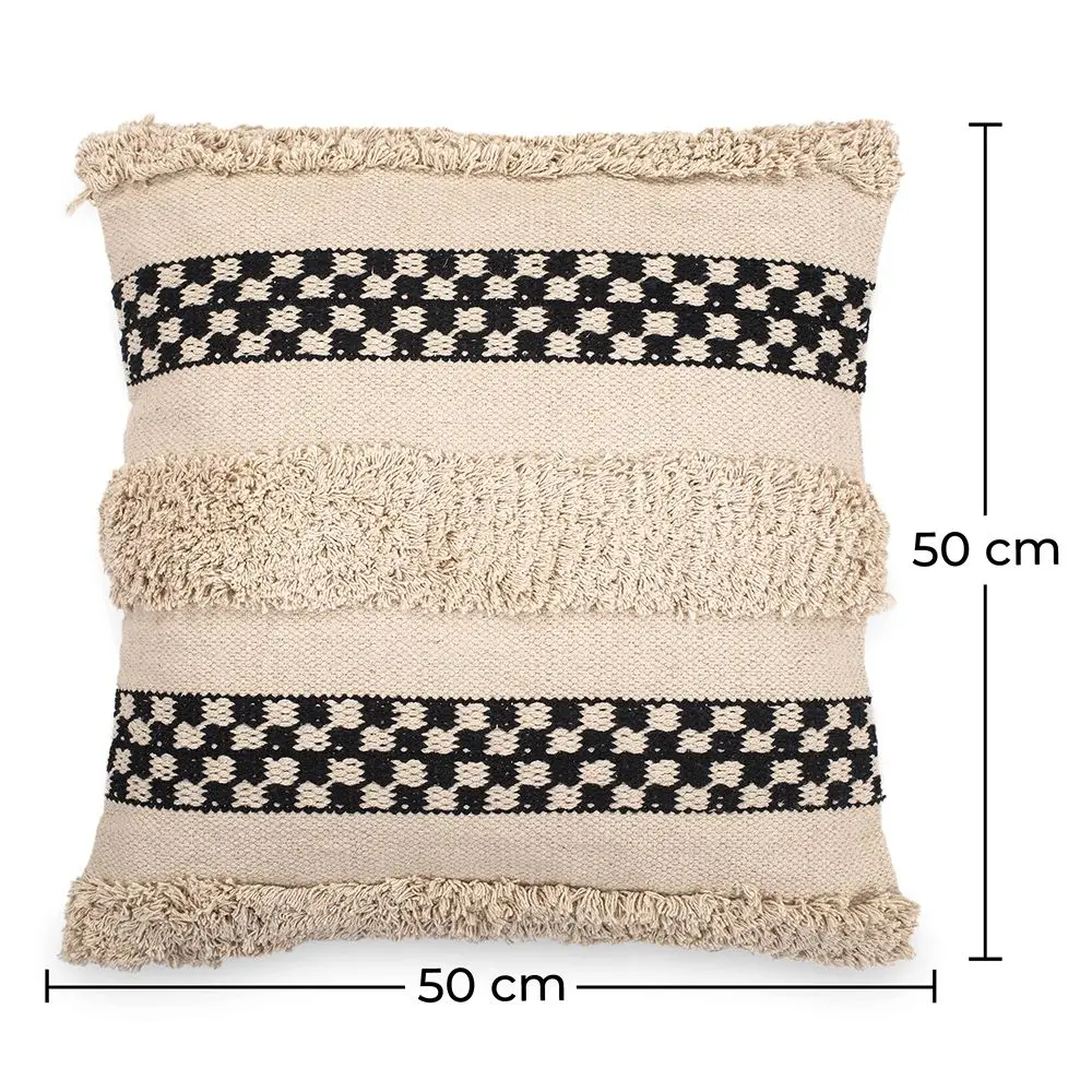 Para darle a un sofá, sillón o incluso la cama apuesta por cojines de diseño con texturas como este cojín cuadrado que te presentamos. Nuestro cojín de estilo boho Sefra está fabricado en algodón, es suave y mullido. El relleno de poli fibras te ofrece un apoyo cómodo y reconfortante. Este cojín cuadrado con toques nórdicos es perfecto para aportarle clase y lujo a tu decoración de interior. Relleno incluido.