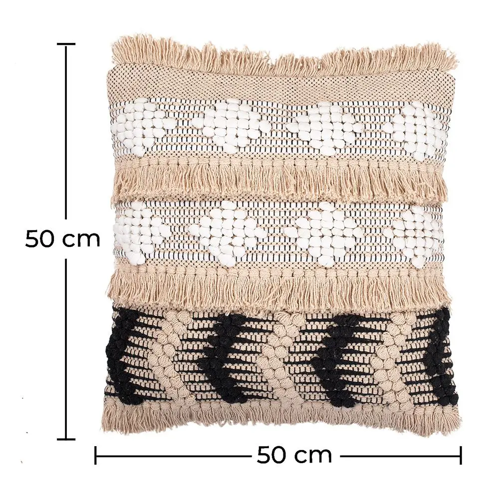 Para darle a un sofá, sillón o incluso la cama apuesta por cojines de diseño con texturas como este cojín cuadrado que te presentamos. Nuestro cojín de estilo boho Wenda está fabricado en algodón, es suave y mullido. El relleno de poli fibras te ofrece un apoyo cómodo y reconfortante. Este cojín cuadrado con toques nórdicos es perfecto para aportarle clase y lujo a tu decoración de interior. Relleno incluido.