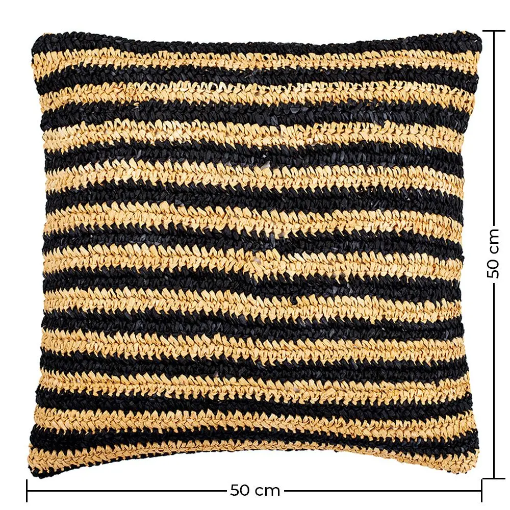 Para darle a un sofá, sillón o incluso la cama apuesta por cojines de diseño con texturas como este cojín cuadrado que te presentamos. Nuestro cojín de estilo boho Chelsea está fabricado en Hoja de rafia, es suave y mullido. El relleno de poli fibras te ofrece un apoyo cómodo y reconfortante. Este cojín cuadrado con toques nórdicos es perfecto para aportarle clase y lujo a tu decoración de interior. Relleno incluido.