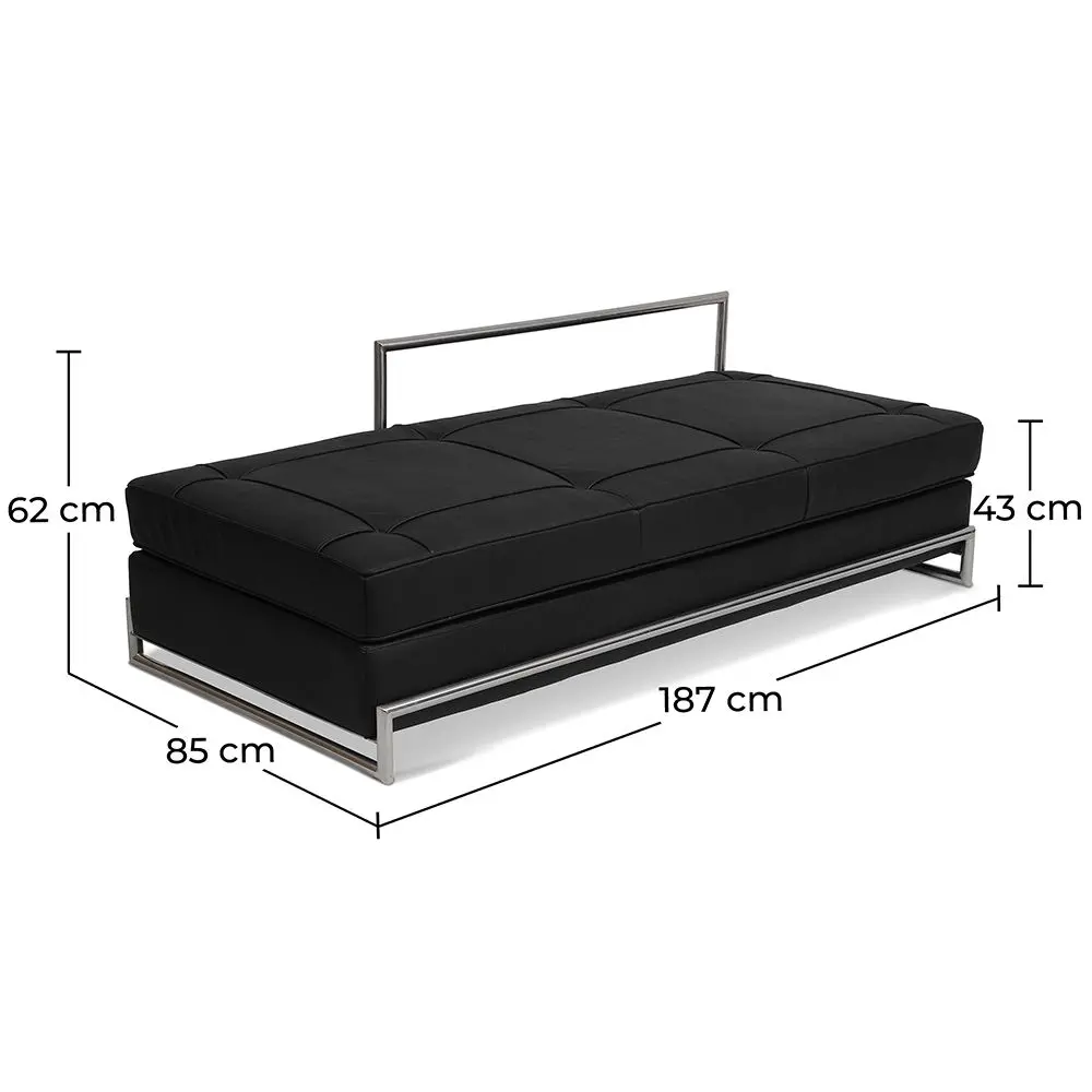Es un Diván muy atractivo y cómodo, particularmente adecuado para obtener una relajación óptima. Su suave asiento de cuero reposa sobre un sólido marco de acero cromado. Póngala en su oficina o en su salón y empiece a disfrutar de su encanto y elegancia.