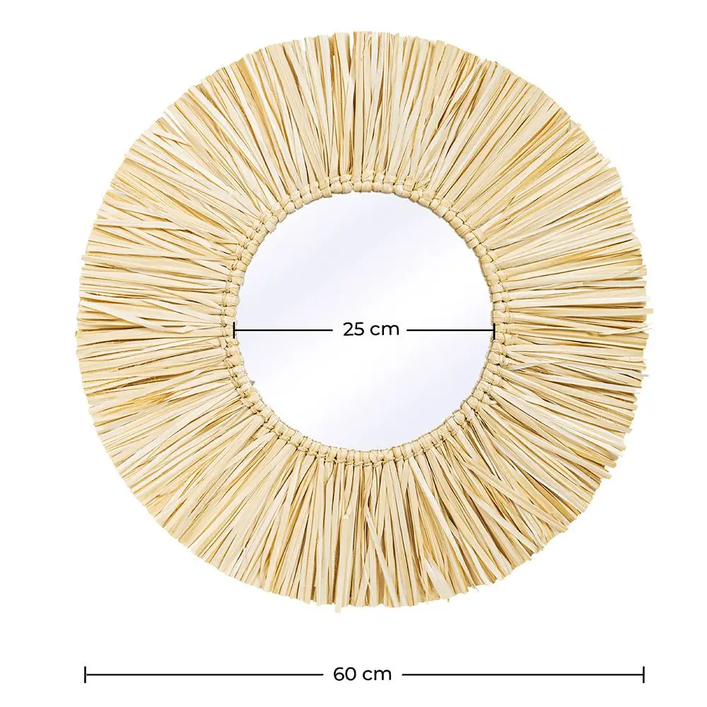 Confía en el estilo boho de este espejo de pared para darle a tu decoración de interior un toque natural y cálido. Nuestro espejo redondo Gaui tiene un diámetro de 60 cm y está hecho a mano con esparto en color natural. Su diseño desenfadado y sencillo hacen de él el espejo de diseño ideal para combinar con cualquier estilo de decoración y en cualquier estancia de la casa.