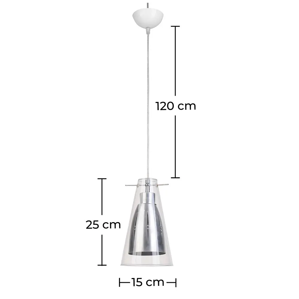 Esta original lámpara está fabricada por una pantalla exterior de cristal y otra interior de metal. Esta combinación de materiales y estructuras hacen de esta lámpara un objeto de iluminación y de decoración perfecto para mejorar el aspecto de cualquier espacio.