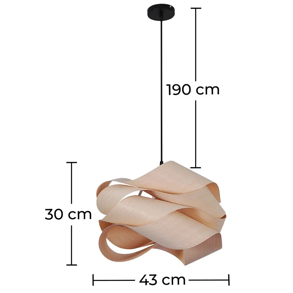 Cuando busque una lámpara colgante y que combine con su diseño de interiores, no puede equivocarse con este hermoso artículo, diseñado para adaptarse a cualquier espacio. Esta lámpara colgante de diseño boho está bellamente elaborada con una pantalla de madera natural y tiene un innovador patrón de remolino. Ya sea que tenga la intención de usarla realmente como pieza central o para resaltar un mueble como una mesa de comedor, el cable totalmente ajustable le brinda esa flexibilidad. Esta lámpara de madera tiene generosas proporciones de 30 cm x 43 cm, y su estilo boho agregará un aspecto acogedor a cualquier habitación.