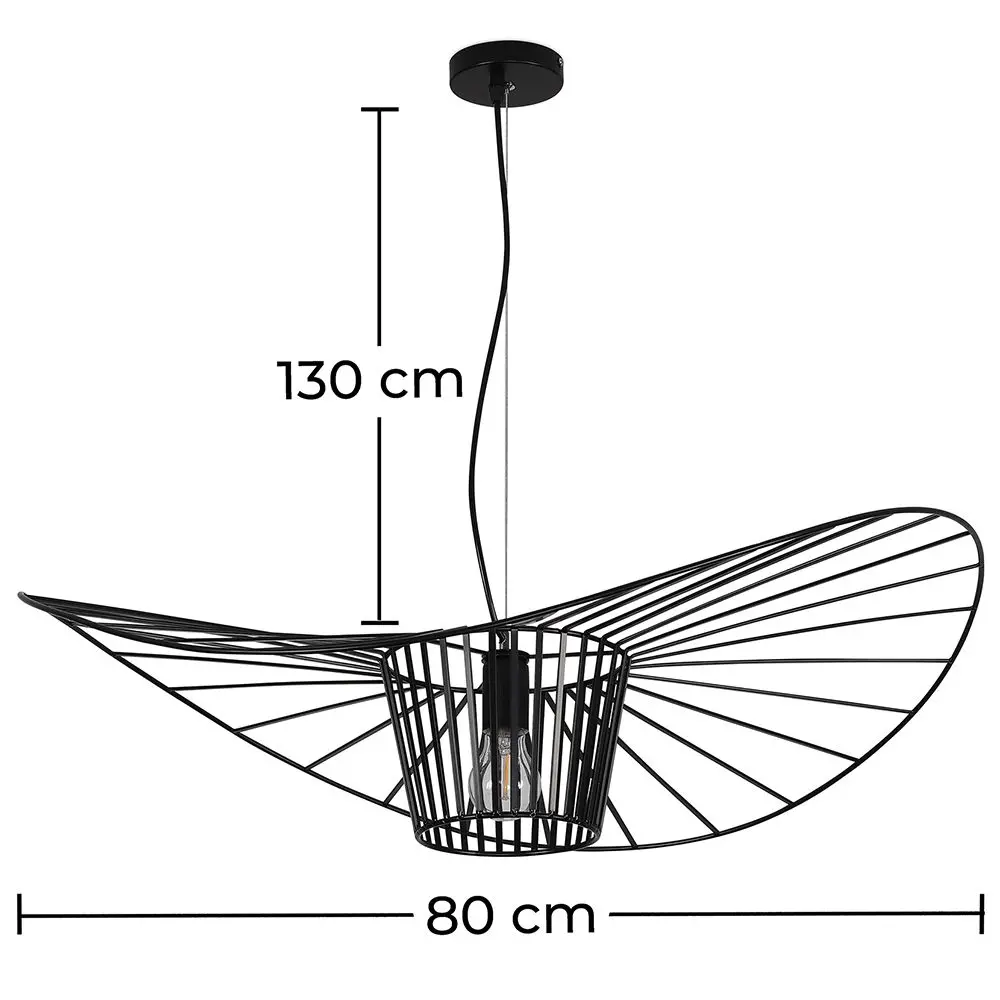 Esta impresionante lámpara de diseño no sólo alumbrará tu espacio con estilo sino que también será la pieza central de decoración de tu hogar. Esta lámpara colgante tiene una magestuosa pantalla de 80cm de diámetro que llamará la atención por su diseño exclusivo e innovador. El cable de 130 cm de longitud es regulable en altura, lo que la hace perfecta para colocar en techos altos o normales.