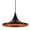 Este creativo diseño proporciona una luz directa, y puede constituir un complemento artístico para cualquier estilo de decoración. Esta lámpara colgante Wide Shade está disponible también con el exterior blanco.