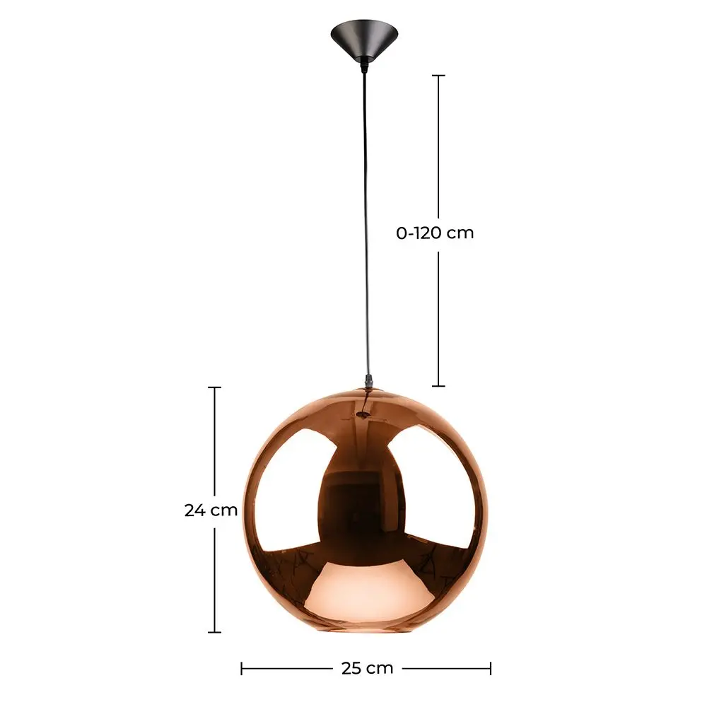 Esta lámpara colgante está hecha de metal cromado mediante galvanoplastia y su embellecedor es de acero de carbono. Usted podrá ajustar el cable de 250cm de su lámpara Cooperlight para que le sirva tanto para espacios con techos muy altos como para habitaciones con techos de altura normal.