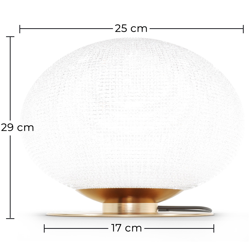 Esta lámpara no solo aporta funcionalidad y elegancia al diseño de interior, sino que además sirve para potenciar el estilo decorativo de tu hogar, restaurante, hotel o cafetería. Es una lámpara de diseño formada por una bola de cristal con textura y una base en dorado que le aporta un toque vintage muy especial.