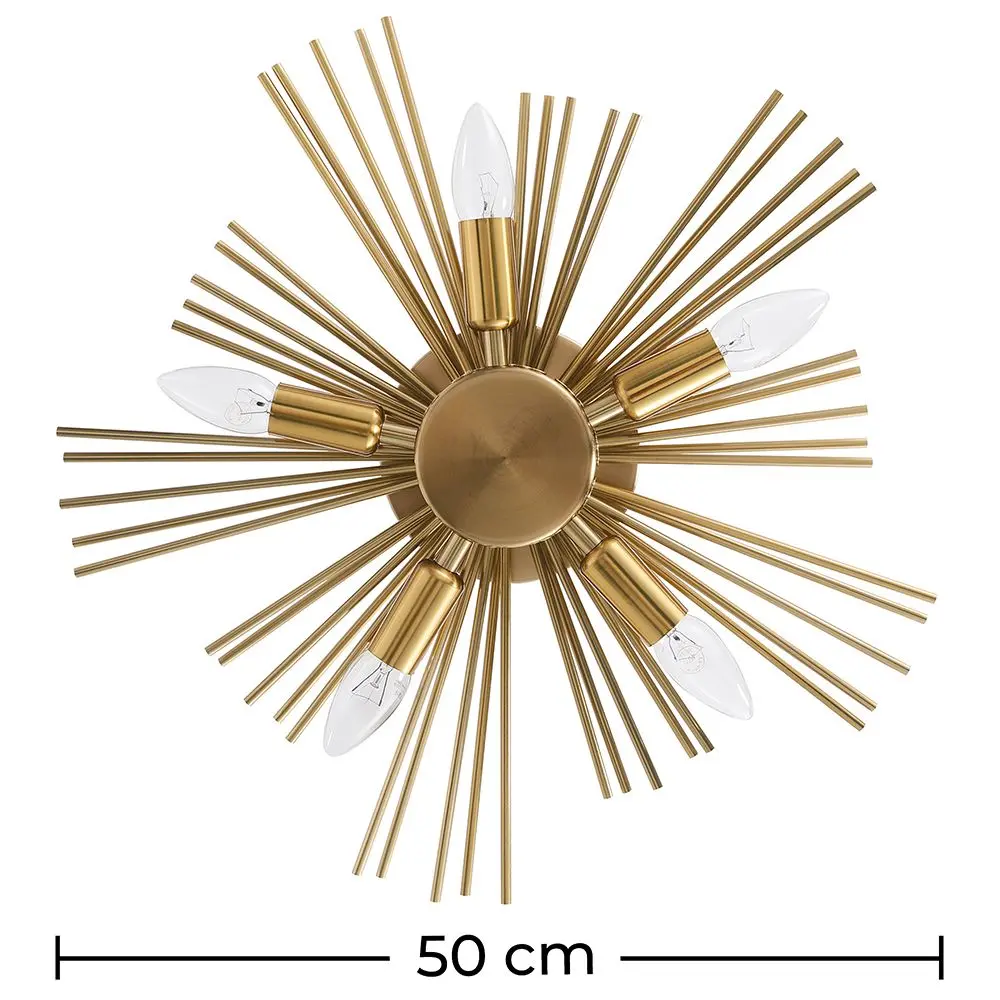 Esta preciosa lámpara de pared aportará lujo y clase a tu decoración interior. Se trata de una lámpara fabricada en metal y formada por 5 casquillos que iluminará con una luz cálida y acogedora el dormitorio, el salón, el pasillo o la entrada de la casa.