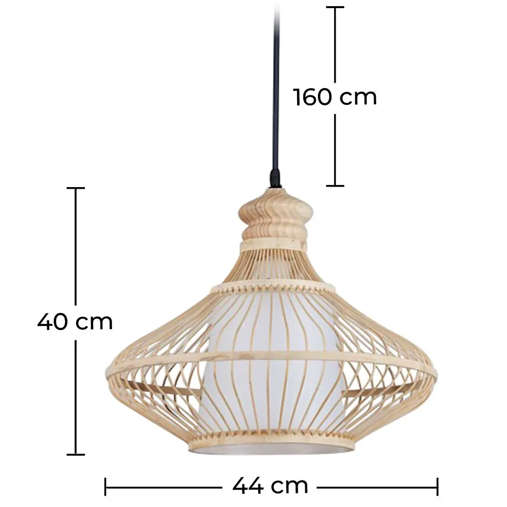 Esta lámpara de techo de bambú además de iluminar tu hogar, te proporcionará una decoración exótica. Esta lámpara colgante te seducirá por la originalidad de su forma que difundirá una luz cálida y acogedora. El aspecto natural de esta lámpara inspira ligereza y sencillez, por lo que te será muy fácil combinarla con otros estilos de decoración y materiales como la madera o el metal.