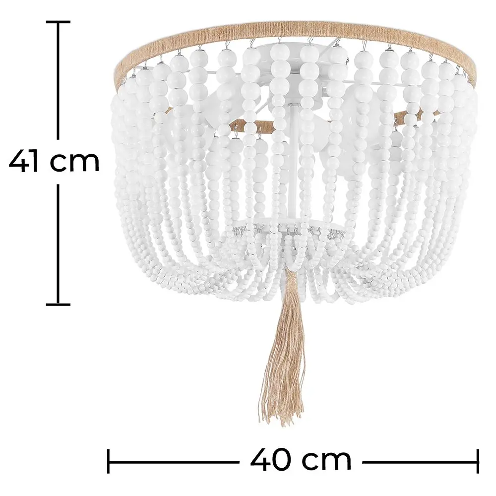 Cuenta con un marco de metal sólido combinado con elegantes bolas de madera, lo que lo convierte en una excelente pieza de decoración además de servir como lámpara de techo. La lámpara viene preparada para que pueda ser instalada fácilmente. Garantiza una iluminación completa y funciona bien con todo tipo de colores de bombilla.
