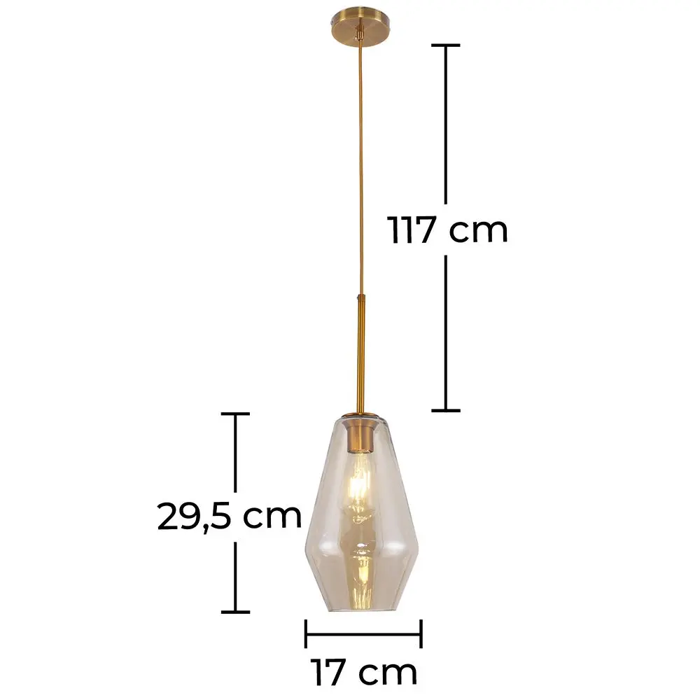 La pantalla de cristal de diseño de diamante tiene 17 cm de diámetro y 28,5 cm de altura y funciona bien con cualquier color de bombilla. Instalarla es bastante sencillo y no requiere ninguna herramienta. Simplemente conecte el cableado y fije el dosel al techo.
