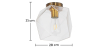 La lámpara de diseño moderno presenta una esfera de cristal con un diámetro de 20 cm y una altura de 30 cm y la pantalla está disponible en varios colores. El soporte colgante y el dosel están hechos de metal en color dorado. También viene con un cable de alimentación, por lo que los propietarios solo tengan que conectar los cables.