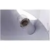 Compuesta por acero al carbono, esta moderna y contemporánea lámpara parece estar suspendida en el aire, mientras que su color se expande a través de su interior.