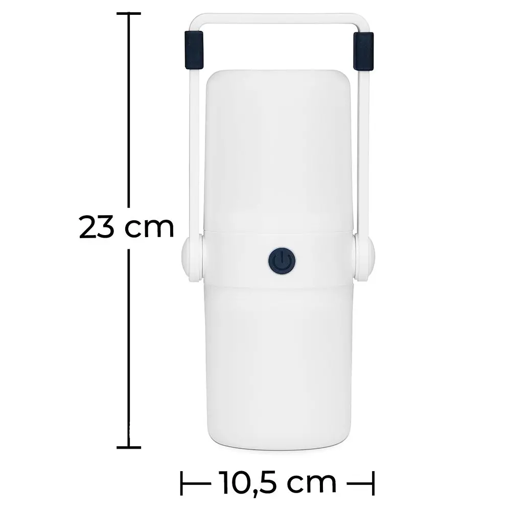 Esta lámpara portatil es muy práctica para usar durante tus viajes como lámpara de camping o para tenerla en casa y poder colocarla en algún sitio dónde no haya enchufes. Es una lámpara con una batería de Litio, con sistema de protección de sobrecarga y sobredescarga, que se carga a través del USB. Tiene dos modos de iluminación: parte superior iluminada o parte superior e inferior iluminada, así podrás iluminar con más o menos intensidad según la situación. Otra característica que tiene esta lámpara LED portátil es que dispone de una salida USB para que puedas cargar el móvil en situaciones de emergencia.