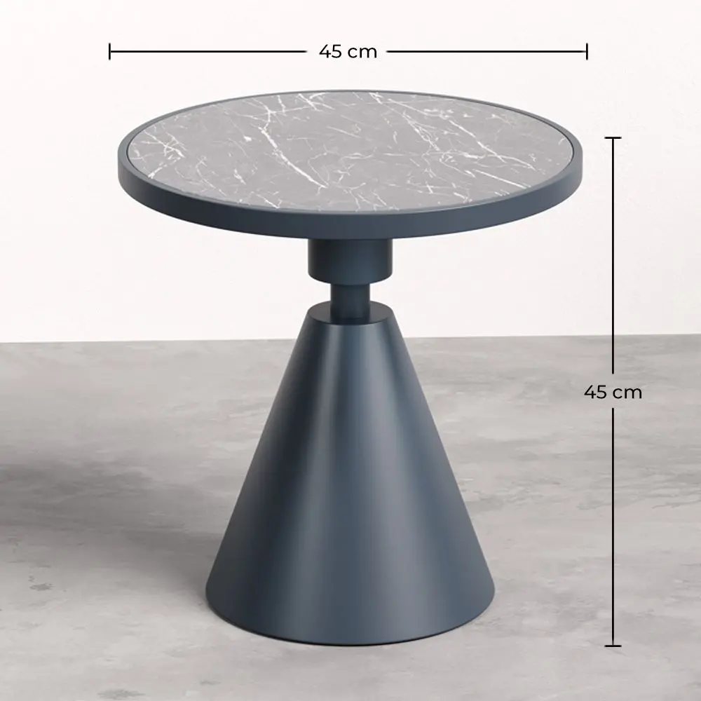 Añade un toque de elegancia a tu espacio exterior con esta mesa auxiliar redonda de metal y base de pizarra. Diseñada para resistir las condiciones climáticas, esta mesa es ideal para patios, jardines y terrazas. La combinación del metal resistente con la textura natural de la pizarra proporciona una estética moderna y sofisticada, mientras que su construcción robusta garantiza durabilidad. Ya sea para usarla como soporte para plantas, bebidas o como una pieza decorativa, esta mesa auxiliar es la opción perfecta para cualquier ambiente exterior.