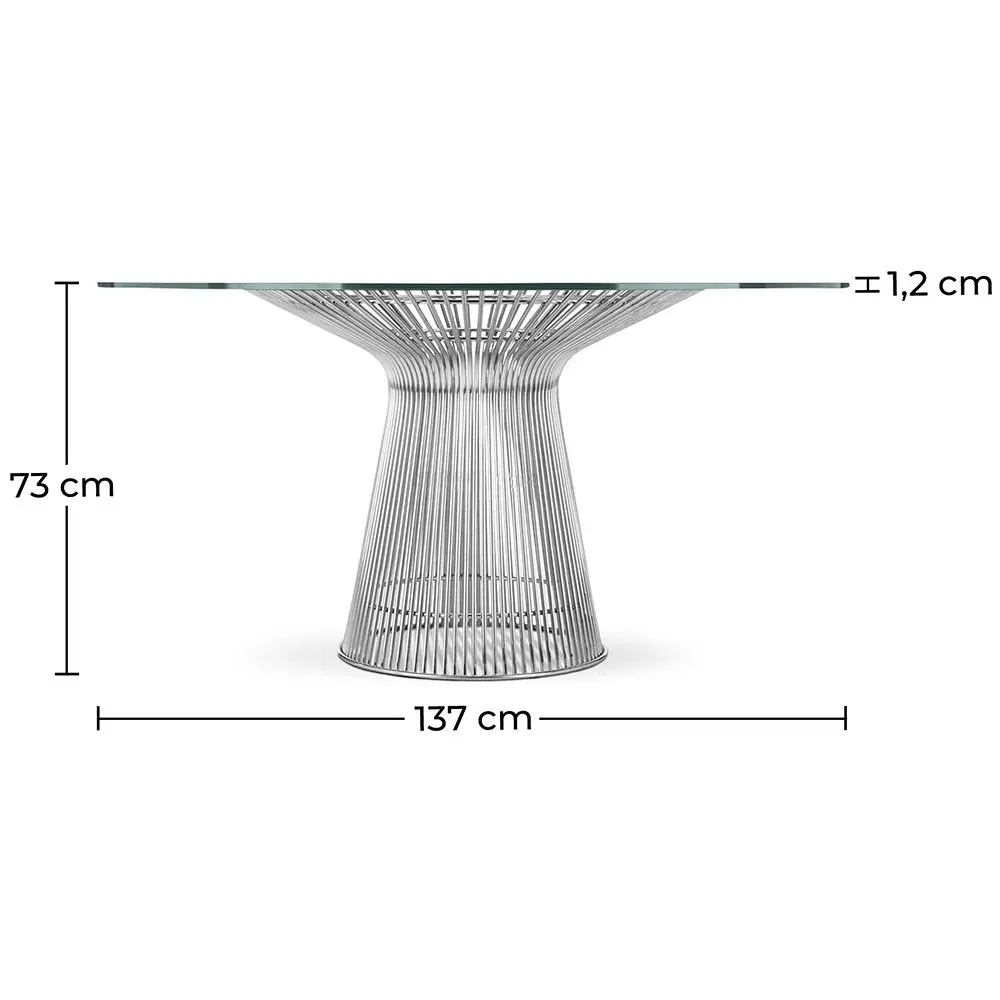 La Mesa de comedor Cylinder, tiene la superficie hecha de cristal.