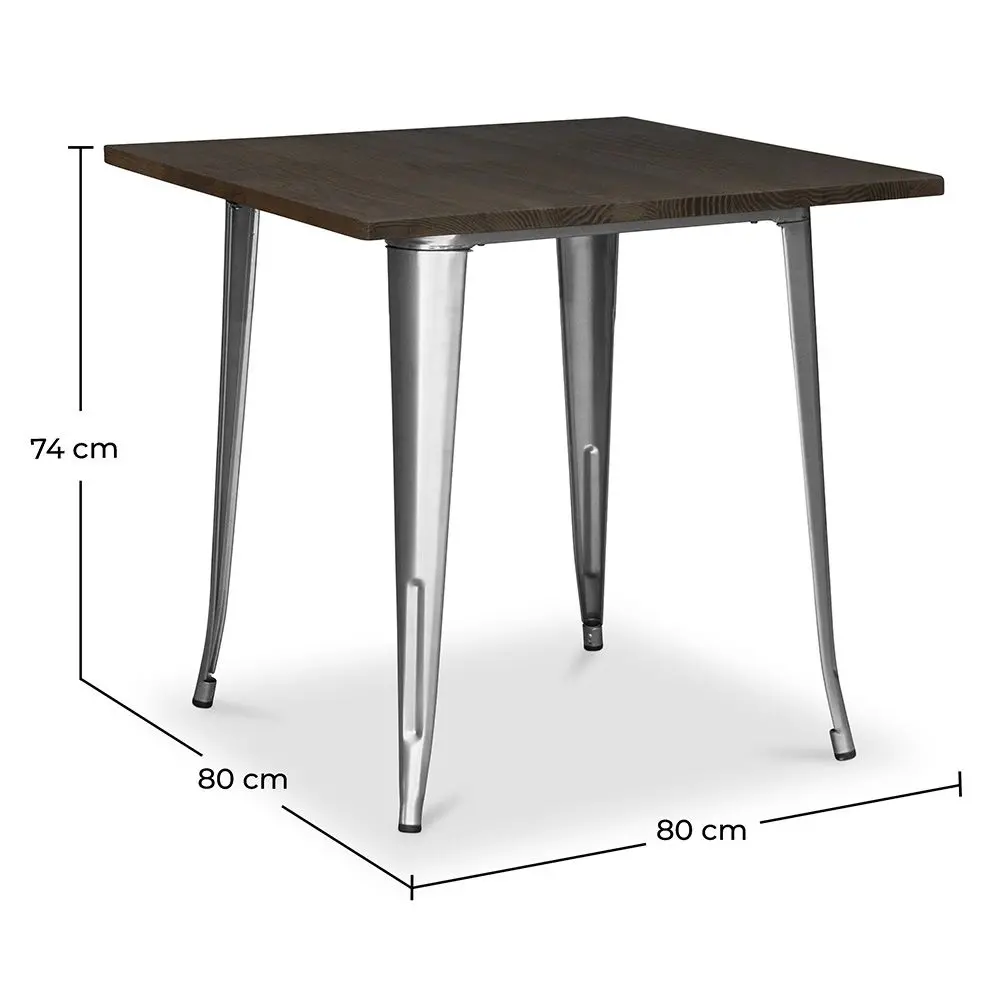 Esta mesa de comedor cuadrada y de estilo industrial es perfecta para 4 comensales. Combinada con las sillas Bistrot Metalix Style podrás darle a tu salón / comedor el total look retro tan de moda en el mundo del diseño y la decoración.