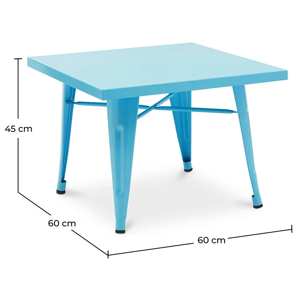 Si estás buscando una mesa infantil que aporte diseño a la habitación de tus hijos y que además sea muy resistente has encontrado la mesa perfecta. La mesa Bistrot Metalix style de niños está fabricada de acero macizo, es muy robusta y estable, ideal para aguantar el uso y el poco cuidado de los más pequeños de la casa. Consta de 4 tapillas de goma en las patas para impedir las rozaduras en el suelo.