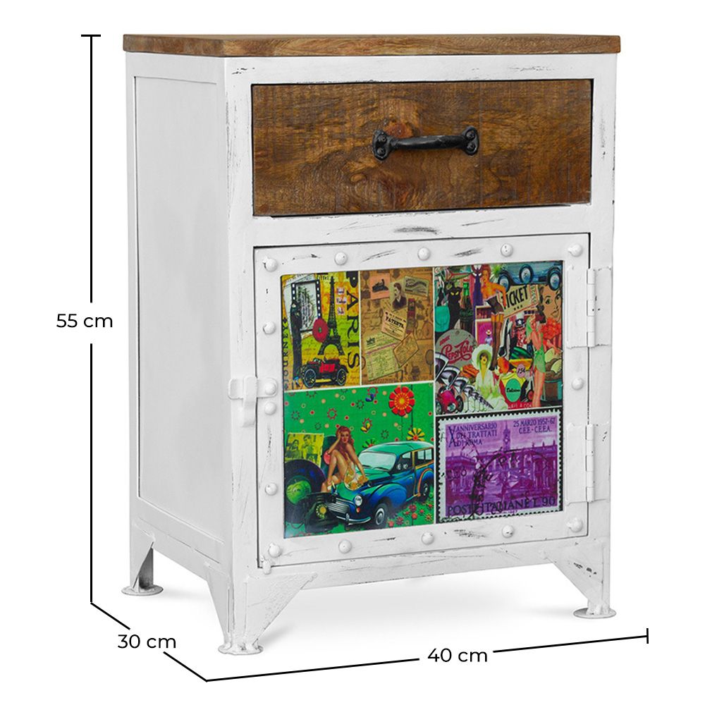 La Mesita de Noche Mango perteneciente a la colección Grange&Co está fabricada en hierro y madera. Pieza clave para aportar carácter a una habitación, tiene una altura de 55 centrímetros y consta de un cajón y un amplio compartimento inferior en donde podrás almacenar todo lo que necesites tener a mano.