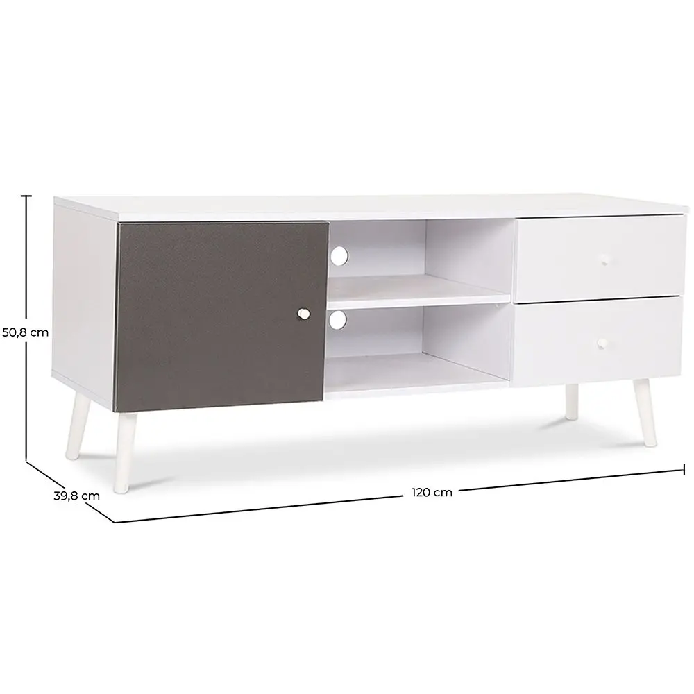 Te atreverías a decorar tu salón con un mueble de televisión escandinavo como este? Está fabricado en madera MDF de gran densidad, consta de 3 nichos y dos cajones, así que no tendrás problema para almacenar tus aparatos audiovisuales, además es muy resistente y de gran calidad.