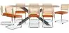 Este elegante set de comedor estilo vintage industrial está compuesto por una mesa de 2 metros de largo, hecha de madera de alta calidad con patas de metal, y 8 sillas de ratán trenzado con asientos de terciopelo. La mesa y las sillas canage son extremadamente duraderas y robustas, perfectas para restaurantes, hoteles y cafeterías. El aspecto vintage y boho chic del conjunto lo hace ideal para cualquier tipo de espacio y los tonos neutros te permitirán integrarlo facilmente con el resto de tu decoración.