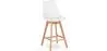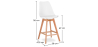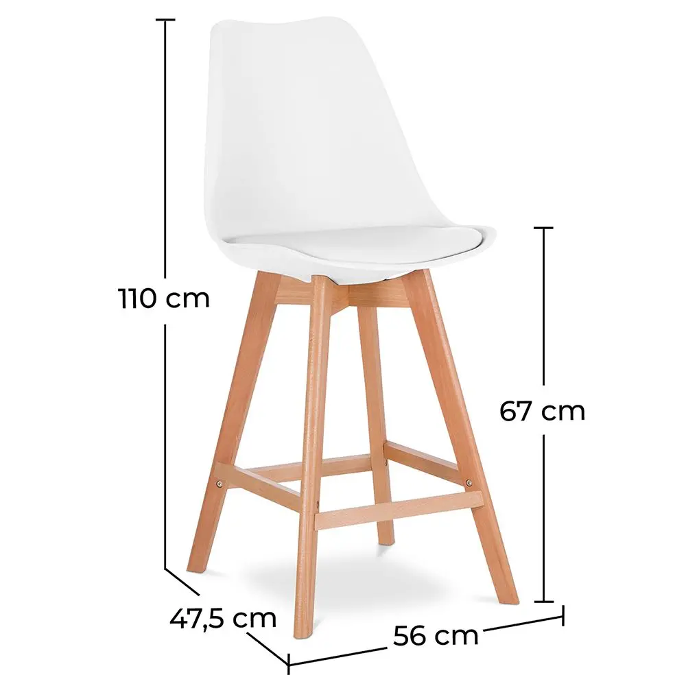 Este taburete de bar estilo escandinavo y con cojín fijo está fabricado de PP. Las patas de madera maciza son muy resistentes y estables.