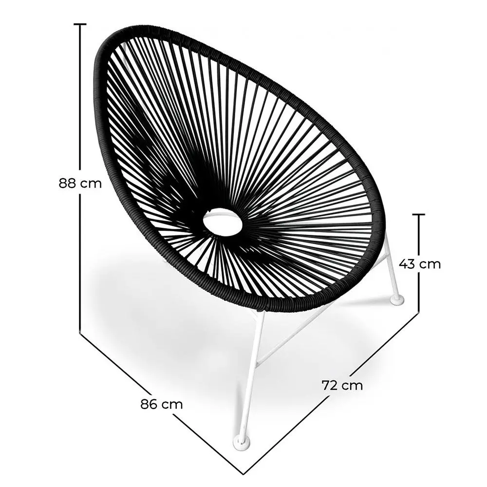 Perfecta para uso en interior como en exterior, su asiento de caña de plástico y con forma ovalada es flexible para aportarte gran comodidad. Sus patas de acero son firmes y estables.