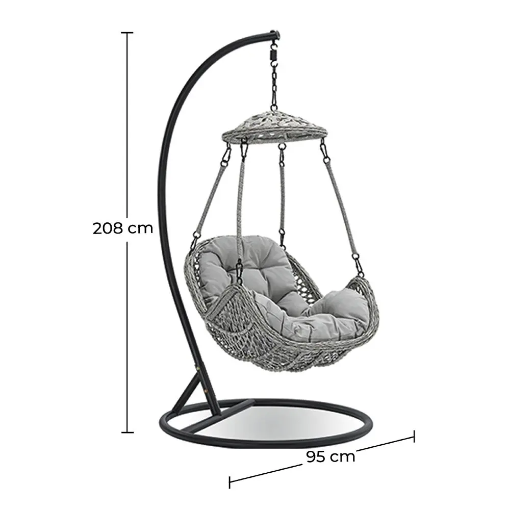 Esta silla colgante es un elemento decorativo y muy cómodo que puede agregar a sus muebles de jardín. Colóquela en una zona tranquila donde pueda tomar aire fresco y disfrutar todas las tardes. No se preocupe por la corrosión que puede causar el sol o el agua, ya que esta silla está hecha con materiales de calidad.
