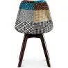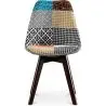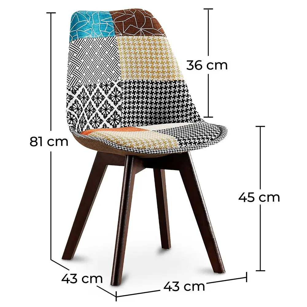 Con un diseño diferente y moderno, esta silla de comedor es perfecta para darle un toque calido a cualquier espacio. Está fabricada con un asiento de polipropileno tapizado en tela de diseño patchwork y además consta de un cojín fijado a la estructura que mejora su comodidad. Las patas, pintadas en un tono oscuro, son de madera maciza de haya y son robustas y muy estables, capaces de soportar hasta 120kg de peso.