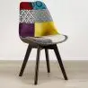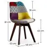 Si buscas una silla de diseño para mejorar el aspecto de tu decoración de interior no pierdas la oportunidad de hacerte con esta pieza exclusiva. Se trata de una silla de comedor con un asiento de polipropileno tapizado con tela de diseño patchwork. Consta de un cojín fijado a la estructura con tornillos y un respaldo curvado que mejora la comodidad del que la usa. Las patas están hechas de madera maciza de haya en color oscuro y son muy resistentes y robustas, capaces de sorportar hasta 120kg de peso.