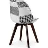 Con su diseño acogedor y moderno, esta silla de comedor es ideal para aportarle un toque especial a cualquier espacio. Está hecha con un asiento de polipropileno forrado en tela de diseño patchwork y consta de un cojín atornillado a la estructura que potencia su comodidad. Las patas, pintadas en color oscuro, son de madera maciza de haya y son robustas y muy estables, capaces de soportar hasta 120kg de peso.