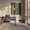 Gracias a su alta resistencia, el ratán es un material idóneo para hoteles, restaurantes o cafeterías con mucha afluencia de clientes. Esta silla de comedor combina a la perfección el ratán natural con el terciopelo clásico. Se trata de una silla con reposabrazos que no pasará desapercibida ya que tiene un aire setentero muy trendy.