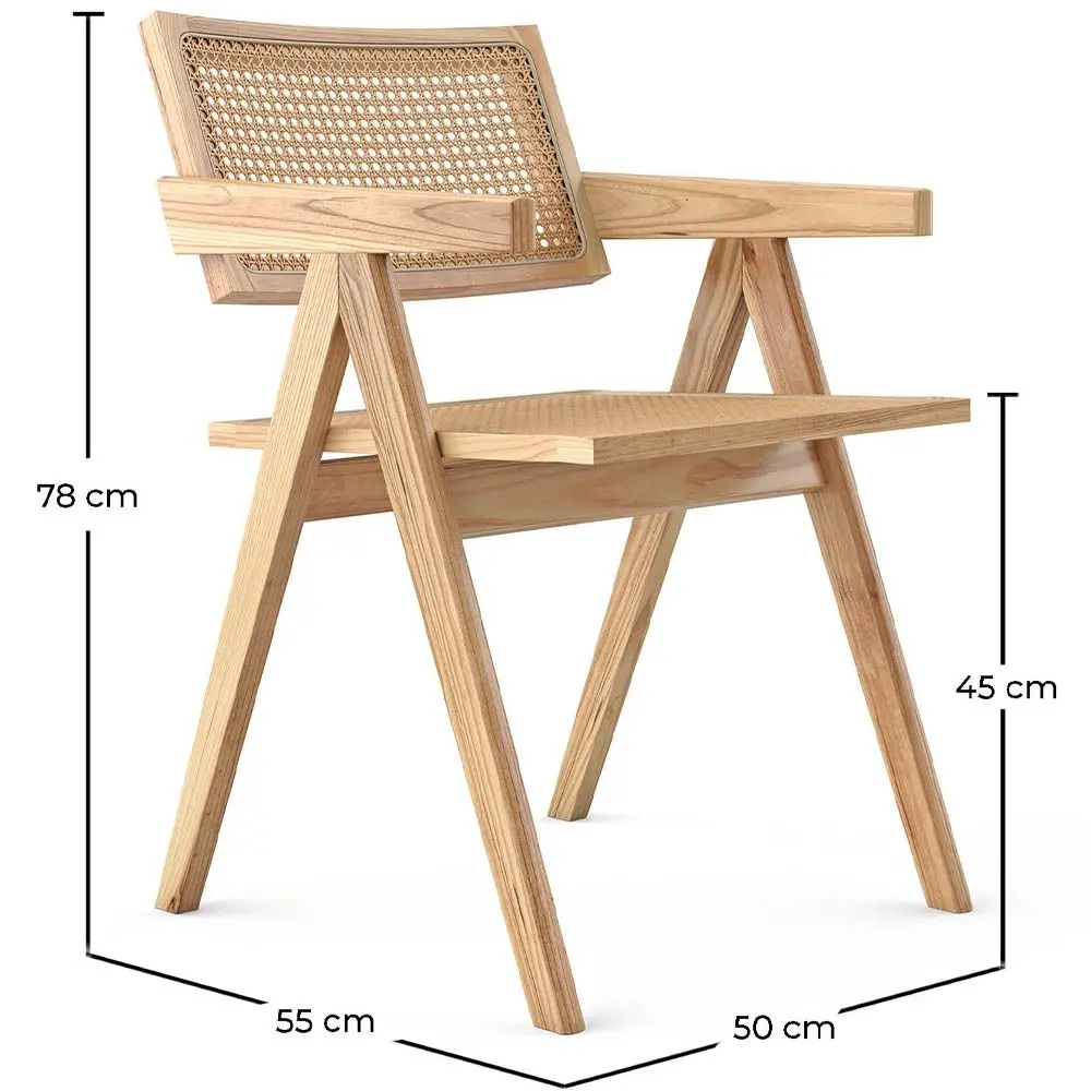 La silla de comedor Leru es una impresionante pieza de mobiliario que combina el encanto rústico del ratán con un diseño de canage, ofreciendo un toque boho y relajado al comedor de casa, a hoteles o restaurantes. Esta silla es perfecta para aquellos que buscan crear un ambiente acogedor y elegante en su comedor. El ratán del asiento y el respaldo se teje cuidadosamente para formar un patrón de canage, creando un respaldo y asiento decorativos que añaden un toque de artesanía a la silla. La estructura de la silla está fabricada en madera maciza, lo que proporciona un asiento de calidad capaz de soportar gran peso con estabilidad y resistencia. Apuesta por esta silla de comedor en color natural y no te arrepentirás.