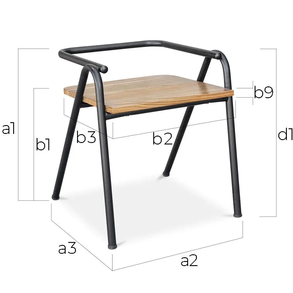 Esta es una silla resistente de hierro y madera que tiene un marco corto y sólido. La madera maciza utilizada garantiza que las personas de todas las tallas puedan sentarse cómodamente en la silla.