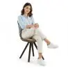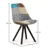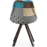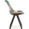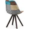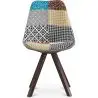 Es una silla tapizada en tela con diseño patchwork, lo que la hace perfecta para combinar con diferentes estilos y colores de decoración. Las patas pintadas con un elegante tono marrón oscuro están fabricadas en madera de haya maciza, lo que las hace muy resistentes y estables. Esta moderna silla además de estar fabricada con materiales de gran calidad que permiten acomodar a personas de hasta 120 kg, es muy cómoda gracias especialmente a su respaldo curvado y al cojín fijado con tornillos a la estructura de polipropileno.