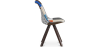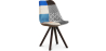 Esta silla de diseño escandinavo está formada pon un asiento de polipropileno tapizado en tela patchwork, consta de un mullido cojín y un respaldo curvado que le confieren mayor comodidad. Las patas están fabricadas en madera de haya maciza y pintadas en una tonalidad marrón oscura que aporta elegancia.