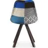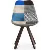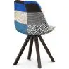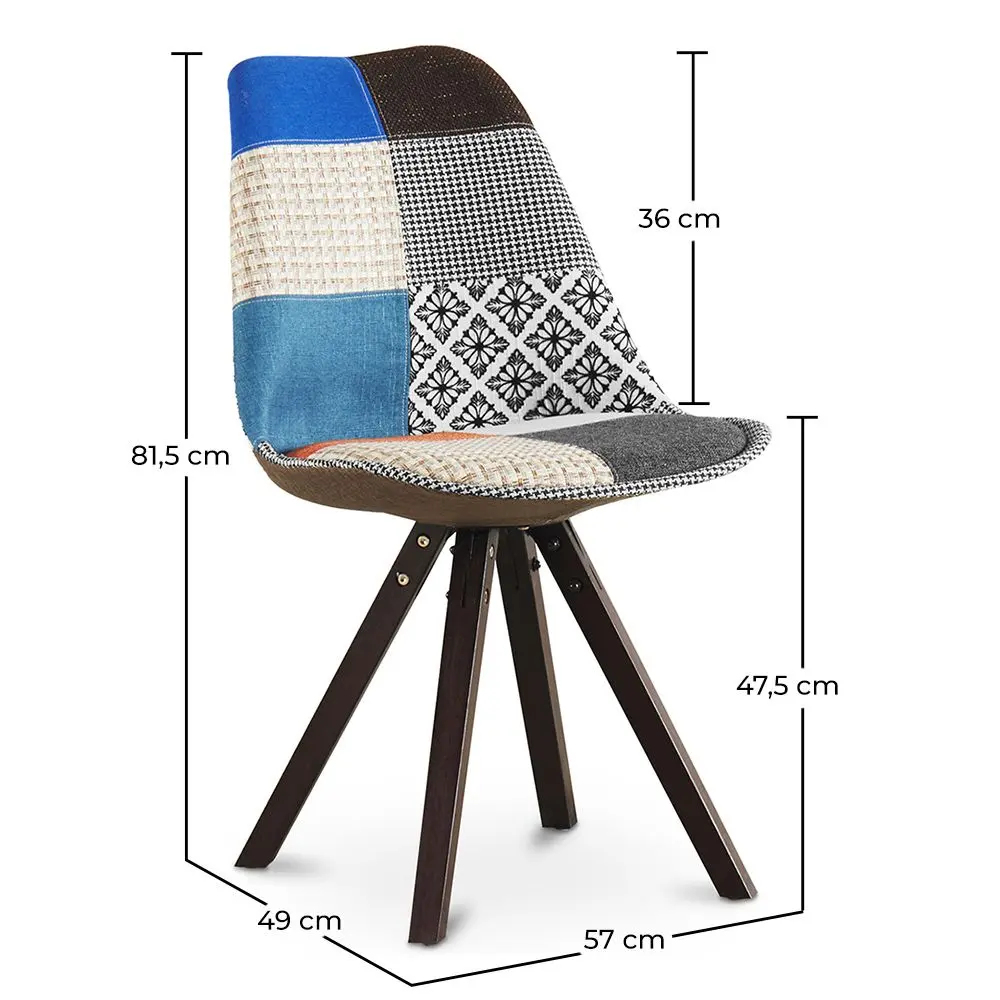 Esta silla de diseño escandinavo está formada pon un asiento de polipropileno tapizado en tela patchwork, consta de un mullido cojín y un respaldo curvado que le confieren mayor comodidad. Las patas están fabricadas en madera de haya maciza y pintadas en una tonalidad marrón oscura que aporta elegancia.