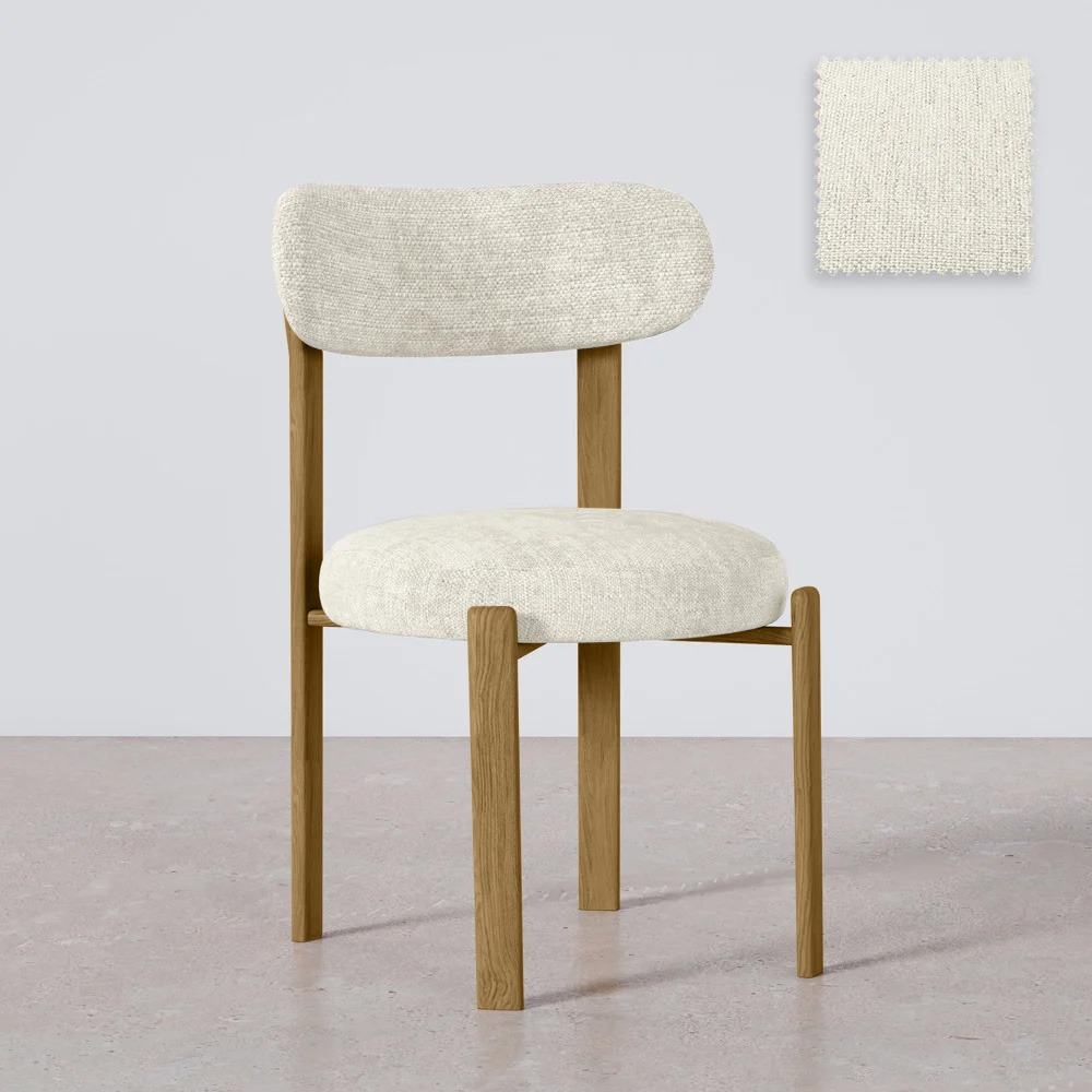 Renueva tu comedor con esta elegante silla tapizada en tela de Chenille que combina confort, estilo y funcionalidad. Su respaldo ergonómico con líneas curvas se adapta perfectamente a la forma del cuerpo, brindando una experiencia de asiento cómoda durante largos periodos. Las patas metálicas con recubrimiento por transferencia térmica imitan el cálido aspecto del roble, aportando un toque natural sin sacrificar resistencia.
