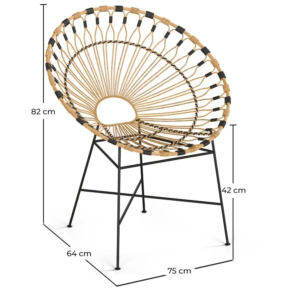 Fabricada en ratán sintético nuestra silla Monai le dará modernidad a tu decoración de interior. Esta silla de diseño puede ser útil tanto para exterior como para interior, hoteles, terrazas de cafeterías y restaurantes se verán beneficiadas del diseño y el lujo de nuestra silla de ratán de estilo boho.
